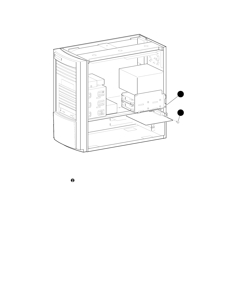 3. Insert the screw through the option and into the I/O shelf as shown.