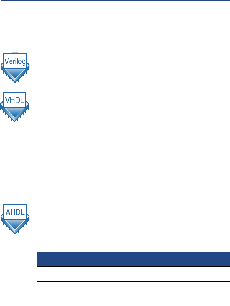 For more information on using the Verilog HDL and VHDL languages in the